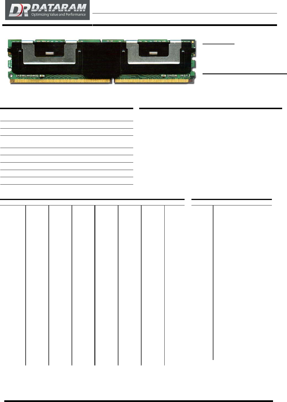 DTM65526C 1 GB, 240-Pin DDR2 FB-DIMM Document 06027, Revision A, 29-Sep-08, Dataram Corporation © 2010 Page 1